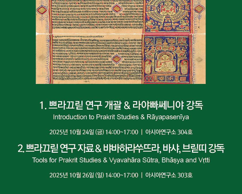 2025년 10월 24일과 26일, 서울대학교 아시아연구소 남아시아센터에서는 인도 중세어 문헌 및 언어 연구의 심화를 위한 ‘2025년 인도 중세어 한일 공동 워크샵’을 개최하였다. 본 워크샵은 인도 문헌학 연구의 저변을 확장하고 한일 학술 교류를 촉진하기 위한 취지로 마련되었다.