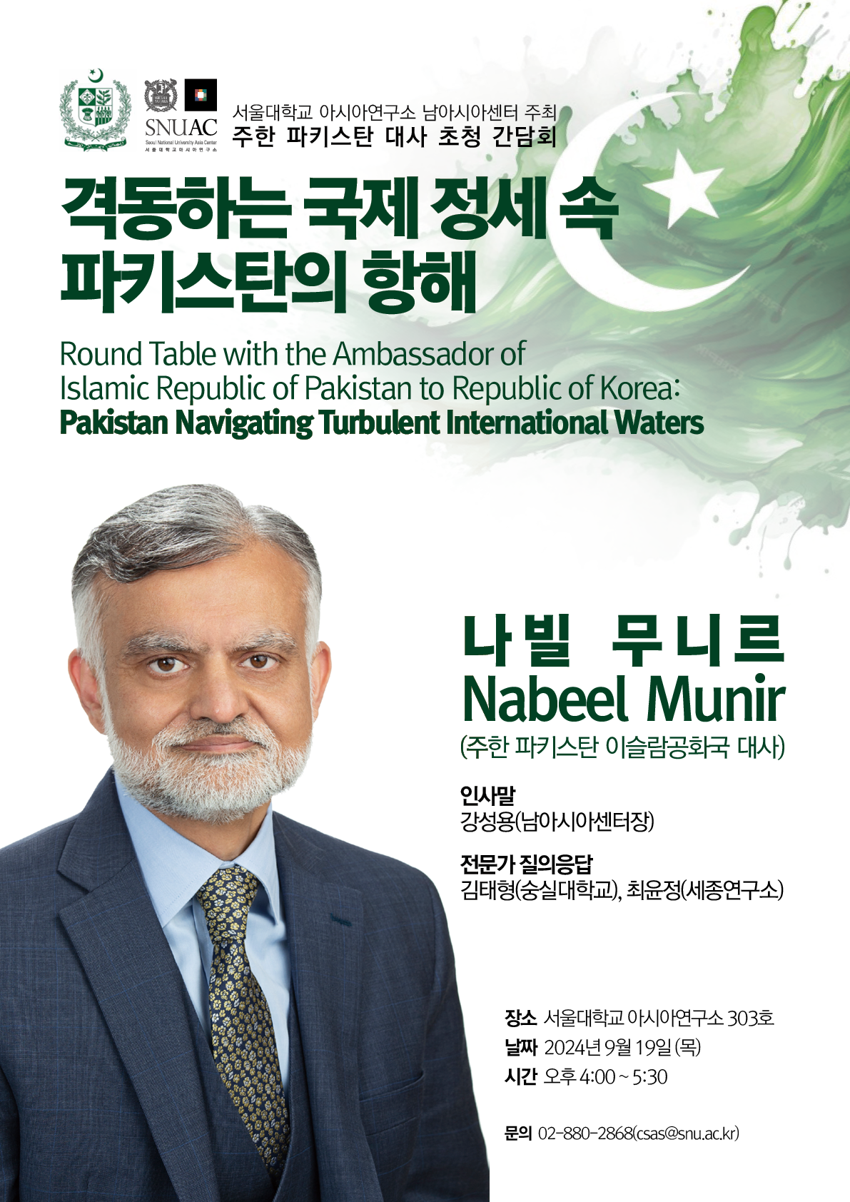 주한 파키스탄 대사 초청 간담회 : 격동하는 국제 정세 속 파키스탄의 항해