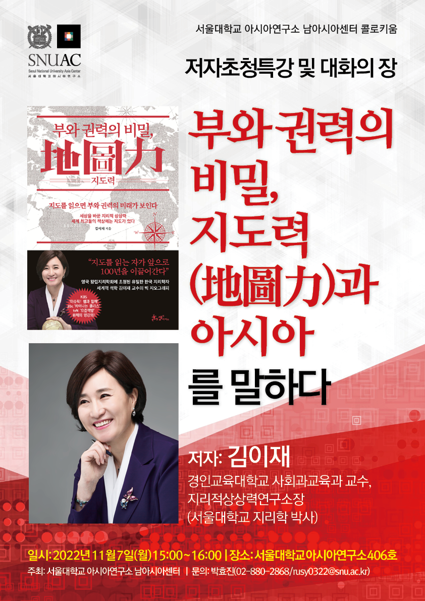 인도 병원은 천국인가 지옥인가 (맹현철 1부) (맹현철 서울대 남아시아센터 선임연구원)October 20, 2022부와 권력의 비밀, 지도력 (地圖力)과 아시아 를 말하다November 7, 2022 Published by editor on October 20, 2022 Categories 남아시아 이모저모 Tags Share0 editor Related postsNovember 27, 2025남이섬교육문화그룹 Three Aksha 공연Read more March 4, 2025인도의 정치가 자꾸 실패하는 이유 (맹현철 서울대 남아시아센터 선임연구원)Read moreFebruary 18, 2025[마인드아카데미 IPKU] 의식, 그리고 알아차림 (양영순 서울대 남아시아센터 선임연구원)Read more Comments are closed.